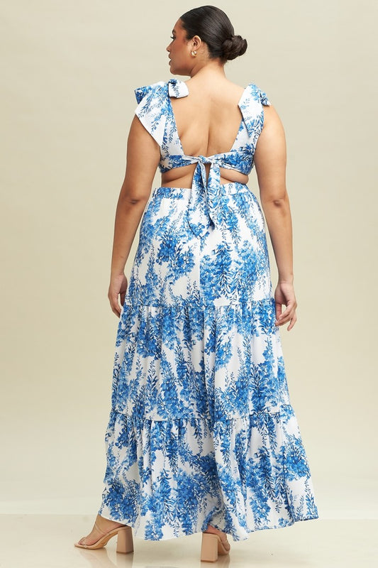 PLUS BLUE FLORALS TIE MAXI DRESS