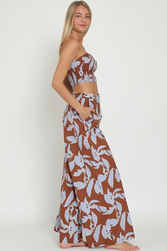 TUBE SMOCKED TOP & HIGH WAISTED LONG PANTS SET