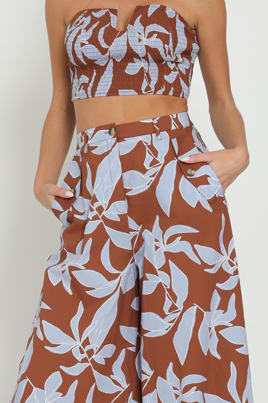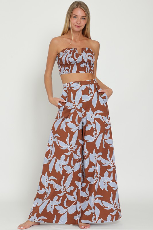 TUBE SMOCKED TOP & HIGH WAISTED LONG PANTS SET